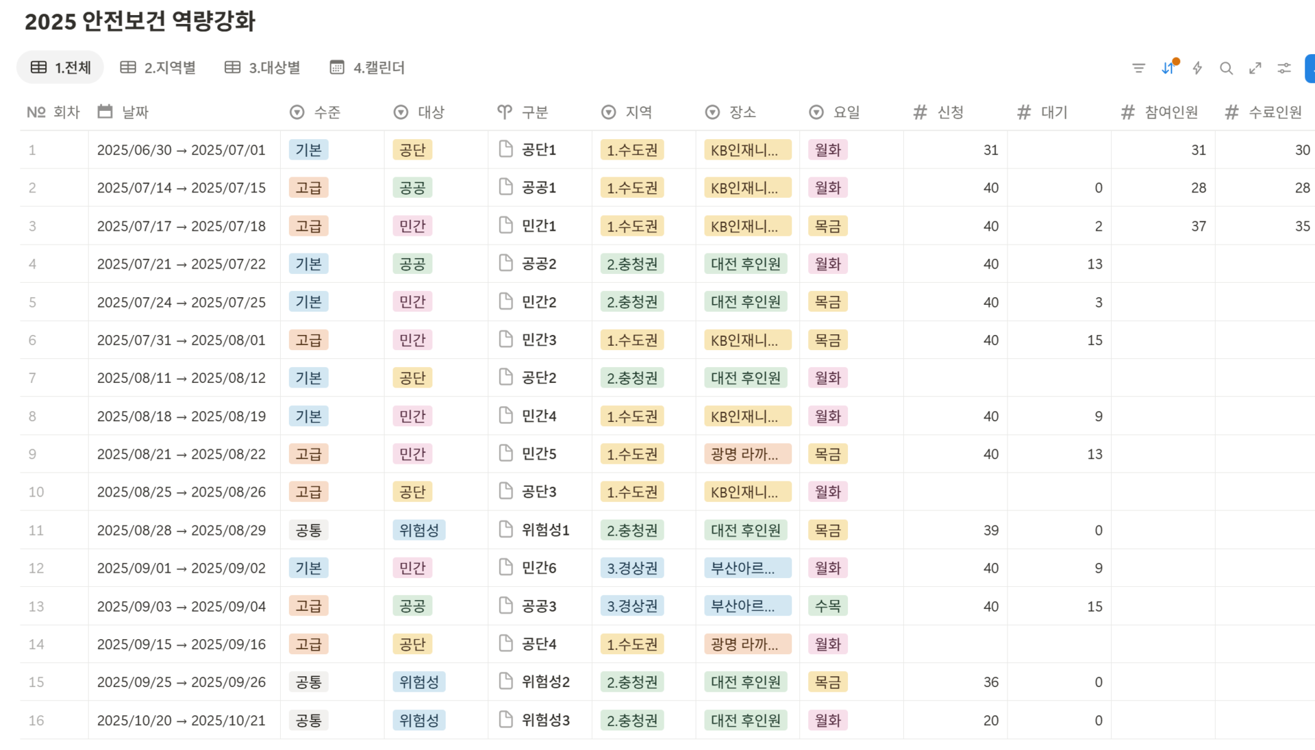 교육 신청 및 수료 현황