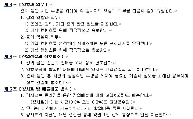 1. 다음은 강사님과 (주)애스커스가 맺게 될 계약서의 일부입니다. 한 번 읽어주세요.